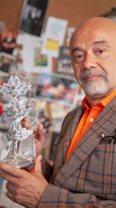 En la parte superior, las gemas plateadas esculpidas en forma de escamas de pez, son una invitación a sumergirse en el mundo submarino, una de las fuentes de inspiración más profundas de Christian Louboutin desde el inicio de su carrera. Además, las correas de cuero metálico recrean la forma de una armadura para encarnar el fuerte mensaje de empoderamiento tan representativo del universo Marvel y de la colaboración con Christian Louboutin. El ganador recibió el modelo único en su talla de zapato.