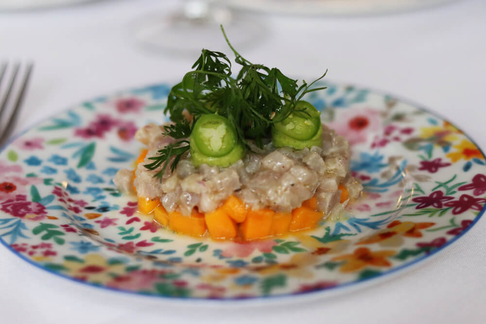 It’s time to choose an appetizer between two fantastic options; a cold poblano pepper velouté with Fourme d’ambert blue cheese or a marlin tartare with avocado and mango. Both surprise diners with their freshness and presentation. And both have been designed to pamper and refresh the palate in the heat of these dates.