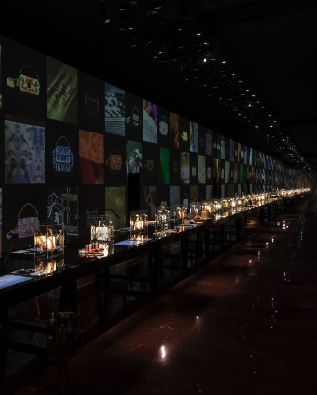 The exhibition focuses on an array of thirty-meter long multimedia workshop tables where immersive simulation of a workshop in which each Baguette displays. As well as the materials and tools used to create them. Weaving, embroidery, silversmithing, marquetry, and many other skills reveal in video series integrated into each station to take the viewer on a journey through Italy and its family workshops.