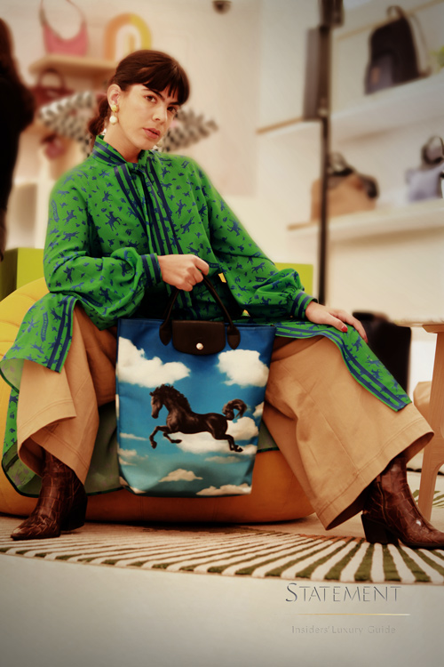 Como un departamento cuidadosamente decorado, cada detalle refleja los códigos de la Maison. Desde los toques de verde oscuro, que evocan tradición y autenticidad; las salpicaduras del vibrante verde claro, que reflejan energía y modernidad y hasta la presencia de objetos del museo de Longchamp. Todos ellos han sido armonizados con elementos contemporáneos y piezas de arte para contar su historia con ingenio.