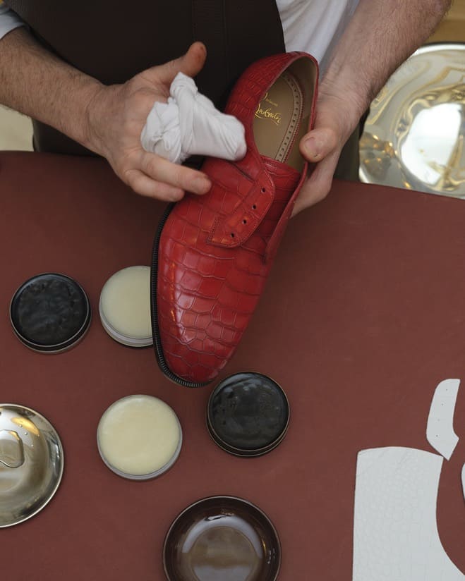 La presentación comienza ofreciendo al visitante una visión profunda de la creatividad que hace única a cada par de zapatos en el Salon des Batailles, con la oportunidad de observar a los artesanos trabajando en tres técnicas clave.