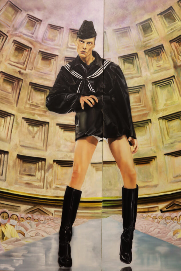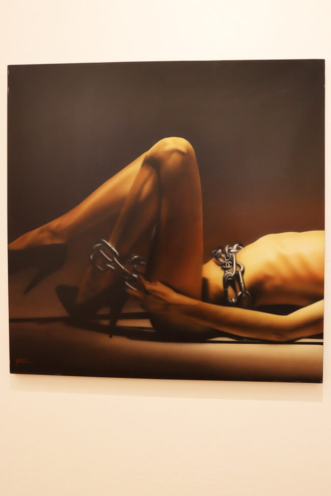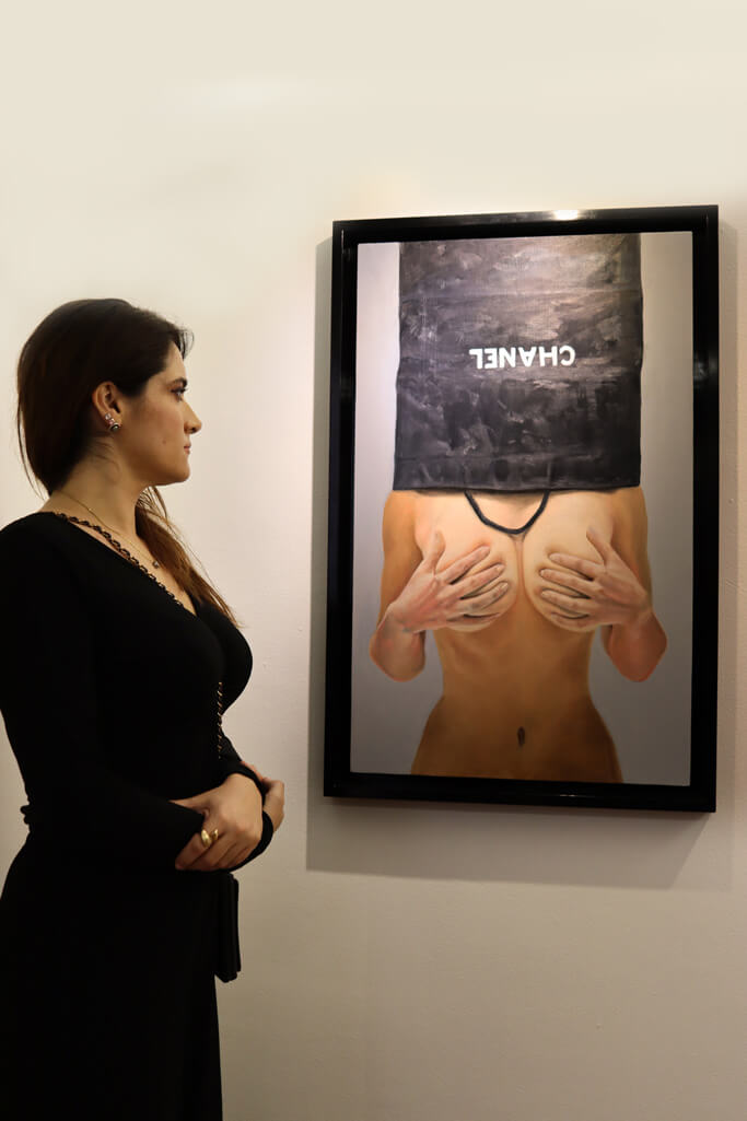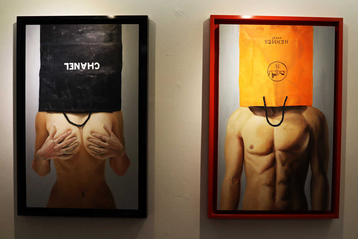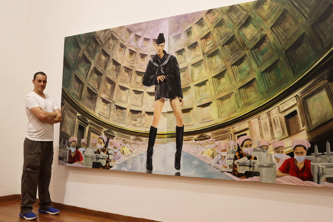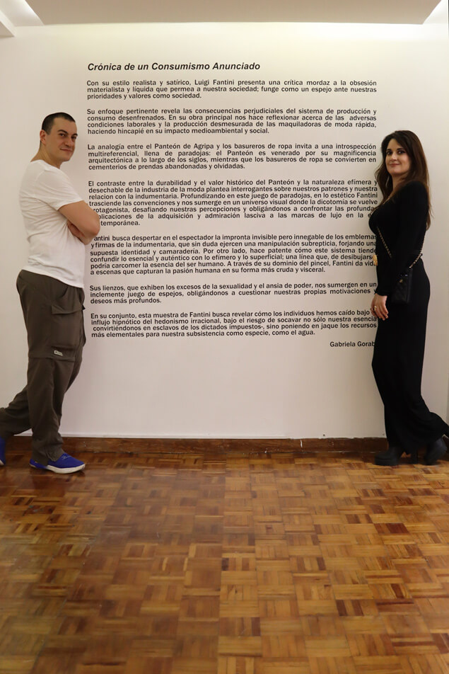 The exhibition, curated by Gabriela Gorab, presents a scathing critique of the materialistic and liquid obsession that permeates our society through the realistic and satirical style of the artist Luigi Fantini.