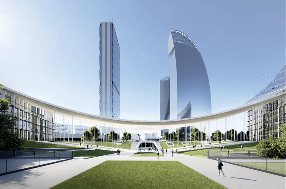 Ubicado en el distrito CityLife, CityWave es uno de los proyectos más innovadores de BIG (Bjarke Ingels Group). Este llamado “rascacielos horizontal” está compuesto por dos edificios de oficinas unidos por una cubierta catenaria curva de 140 metros de longitud.