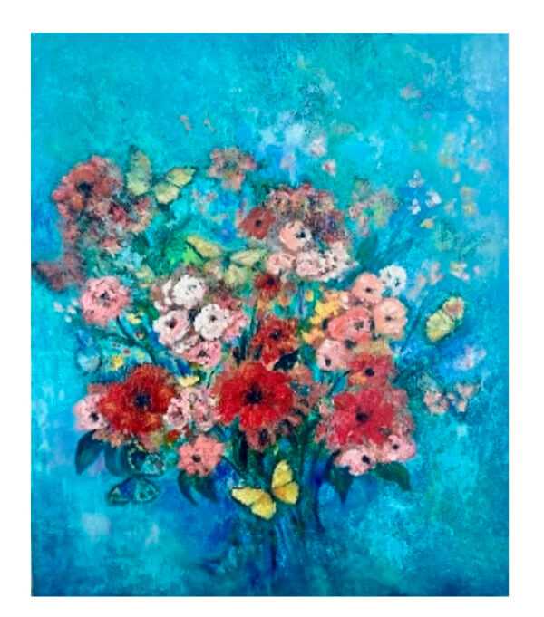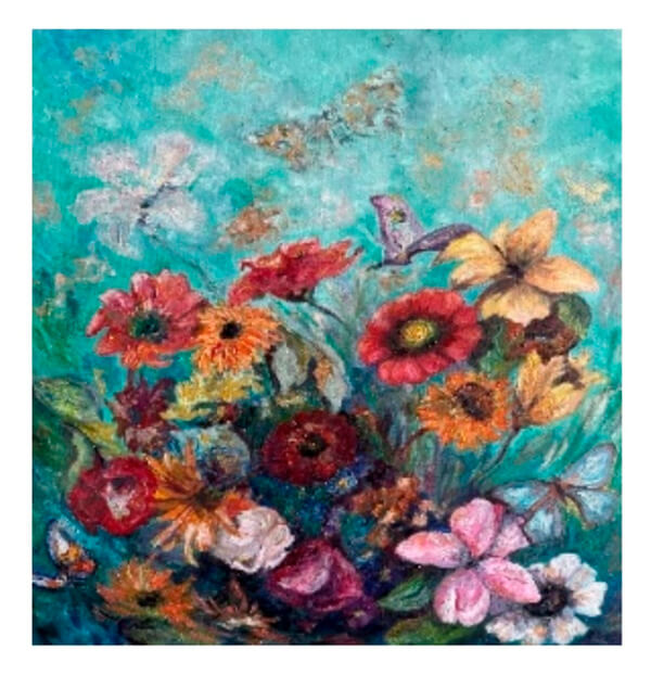Cada trazo, cada mariposa, cada flor… nace desde una emoción profunda y auténtica. Mi lenguaje visual convierte lo íntimo en lo universal y lo efímero en lo eterno. Pintar es mi manera de invitar a mirar más allá de lo visible: a descubrir, en la naturaleza y en la transformación de sus elementos —como las mariposas, los árboles y los paisajes—, un reflejo de nuestra propia esencia.