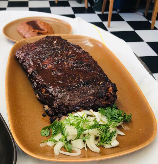 Tampoco podía faltar el tradicional chicharrón de cachete de cerdo con guacamole y tortillas de harina o la costilla de cerdo adobada con un adobo de chile ancho con especias y frijoles refritos adobados. Y si buscas algo especial, no te pierdas el cortadillo con tuétano y arroz rojo. Un guiso tradicional de Nuevo León.