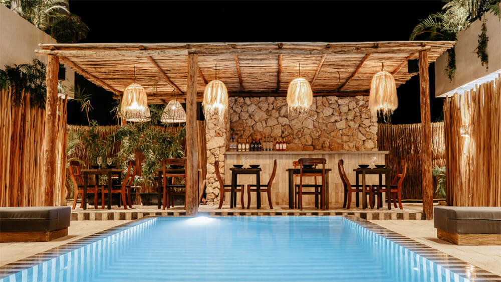 Live Tulum in Majaró, a small luxury hotel with 12 rooms dedicated to offering that moment of peace we need so much today. It has a privileged location 5 minutes from the center and 7 minutes from the beach, where you can get there by motorcycle or bicycle. An authentic place of openness, rest, peace, and comfort that offers an impressive pool, two roof gardens, and activities that invite an inner encounter, such as yoga and a cacao ceremony.