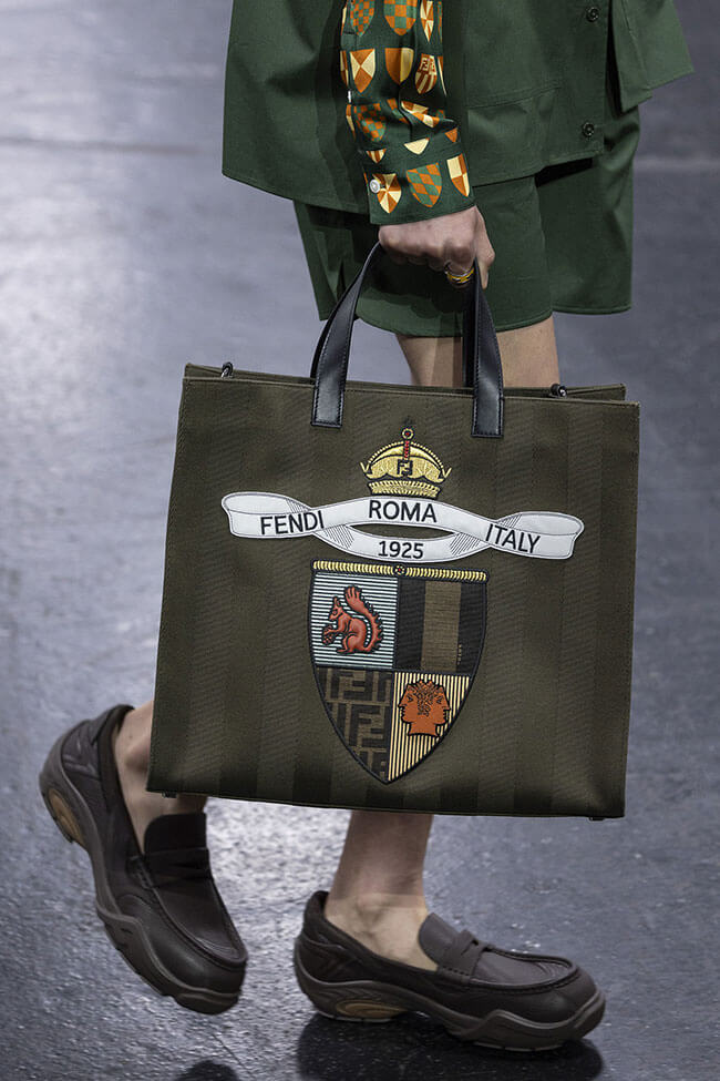 Fendi’s Spring/Summer 2025 Men’s accessories collection is the season’s obsession with the Selleria stitch, from the Peekaboo bag and flexible diagonal shoppers to the new zippered Baguette Double crossbody bag and a patchwork Baguette made from patchwork multicolored from the Fendi workshops.
