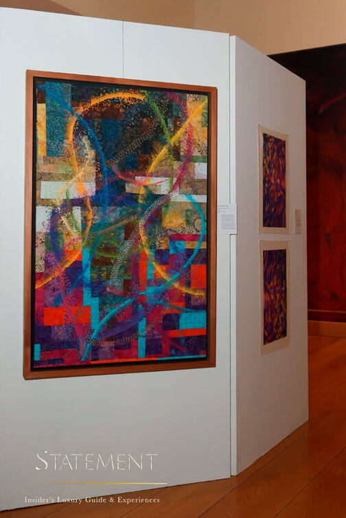 A través de telas fruncidas, hilos trenzados, estambres, crochet, pigmentos y óleo, Legorreta construyó composiciones que vibran. Son piezas que parecen respirar, donde la textura es protagonista y el color se mueve como una coreografía íntima. La artista las describe como una “música visual”, y no es una metáfora: cada obra tiene ritmo, cadencia y un pulso emocional que conecta la materia con el espíritu.