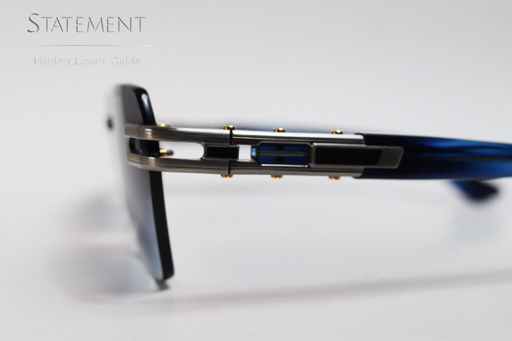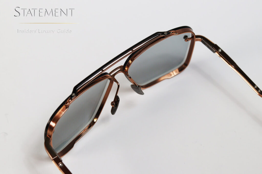 A medida que el proceso de producción de las monturas de DITA se acerca a su final, los bordes de las marcas se sueldan manualmente al puente y posteriormente, un experto artesano lima manualmente el conjunto completo antes de su pulido manual en una pulidora especializada.