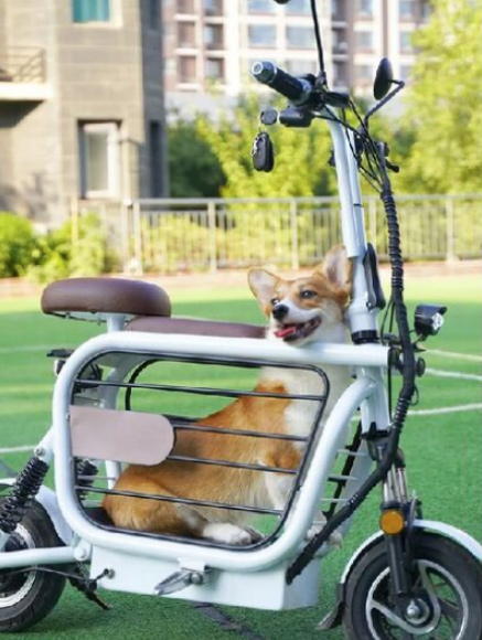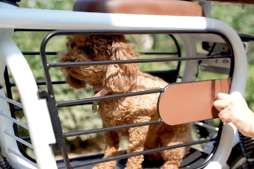 El Mopet está diseñado para llevar a perros medianos y grandes en la parte del copiloto o llevar a los más pequeños en una jaula espaciosa, ubicada al centro del scooter.