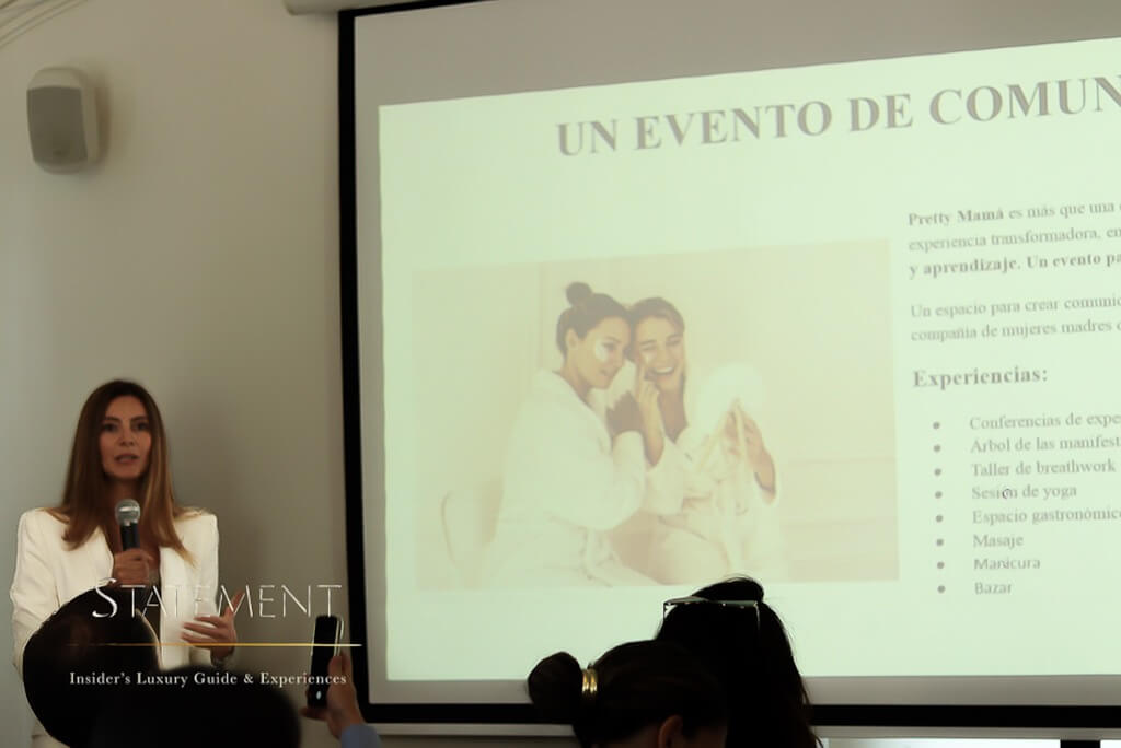 El programa de experiencias de Pretty Mamá incluye: conferencias de expertas en salud, finanzas y desarrollo personal, Árbol de las manifestaciones, taller de breathwork, sesión de yoga, espacio gastronómico, masajes, manicuras, bazar y más.