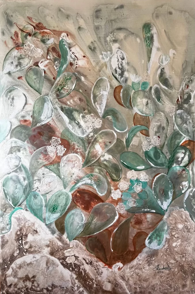 Rita Sánchez Domínguez also leaves her mark off the gallery walls. She is a member of the Asociación de Artistas Plásticos de México A.C., an NGO associated with UNESCO, and an active participant in the Colectivo Mujeres en el Arte. Her social engagement is reflected in projects like Flor de Liss, UNE Puebla, La Kehile, and Esperanza Jojutla Morelos, showing that her creativity is also a force for change.