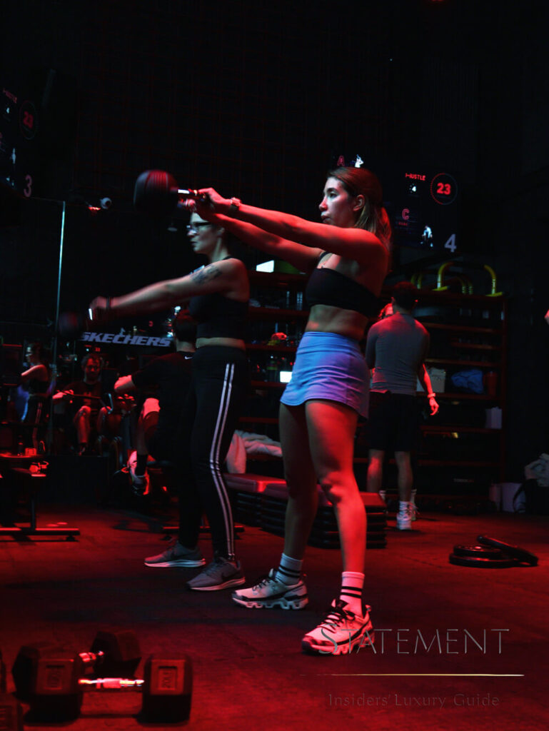 HUSTLE. An intense workout that takes you through five HIIT, cardio, cross-training, and strength stations in 50 minutes is a perfect class for those looking for a total physical challenge.